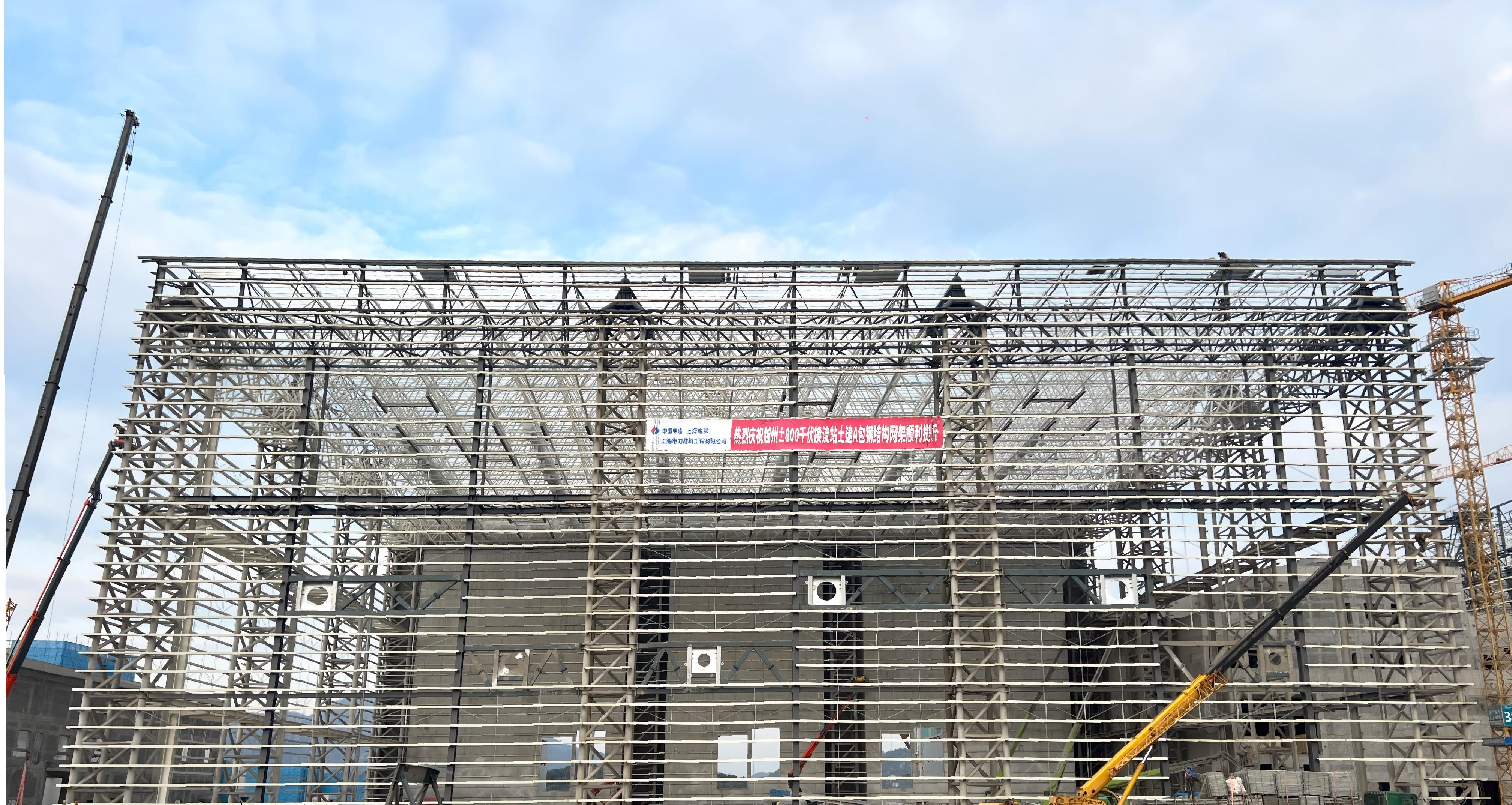 近日,建筑公司參建越州±800千伏換流站極1低端閥廳屋面網(wǎng)架順利完成整體提升。這是繼1月4日該換流站極1高端閥廳屋面網(wǎng)架順利提升后,又一里程碑節(jié)點(diǎn),為后續(xù)換流閥設(shè)備的進(jìn)場與安裝奠定了堅(jiān)實(shí)的基礎(chǔ)。 甘肅—浙江±800千伏特高壓直流輸電工程是世界首條送、受端均采用特高壓柔性直流輸電技術(shù)的跨區(qū)直流工程。項(xiàng)目投運(yùn)后,每年可向浙江輸送電量超360億千瓦時(shí),其中新能源電量占比超50%,預(yù)計(jì)減少1700萬噸碳排放,對(duì)釋放甘肅能源資源優(yōu)勢、保障浙江綠電供應(yīng)與負(fù)荷增長需求、筑牢全國能源安全屏障、推動(dòng)能源結(jié)構(gòu)優(yōu)化和生態(tài)文明建設(shè)具有重要意義。 作為交直流電轉(zhuǎn)換的“中樞”,越州換流站將安裝全球首個(gè)“±800千伏、800萬千瓦”柔直換流閥——這臺(tái)單臺(tái)高度近20米、重200多噸的“電力巨無霸”,對(duì)承載其穩(wěn)定運(yùn)行的閥廳結(jié)構(gòu)提出了極致要求。為了保障本次吊裝的順利運(yùn)行,項(xiàng)目采用“三層平板空間網(wǎng)架+管桁架排架柱”結(jié)構(gòu)型式,以超80米的跨度、超40米的提升高度開創(chuàng)特高壓工程建設(shè)先河。 本工程網(wǎng)架采用液壓整體提升施工工藝,閥廳網(wǎng)架最大跨度達(dá)89.1米,屬于跨度超過60米的網(wǎng)架和索膜結(jié)構(gòu)安裝工程,且提升重量超過1000千牛,符合大型結(jié)構(gòu)整體頂升施工標(biāo)準(zhǔn)。為確保施工安全與質(zhì)量,項(xiàng)目部采用“地面拼裝、整體提升”方案,該方案既有效保障網(wǎng)架拼裝精度,又顯著減少高空作業(yè)量,降低安全風(fēng)險(xiǎn)。 施工中通過有限元模擬分析,對(duì)8個(gè)提升點(diǎn)進(jìn)行優(yōu)化布置。每個(gè)提升點(diǎn)配置16臺(tái)100噸級(jí)液壓提升油缸及高安全系數(shù)鋼絞線,并采用計(jì)算機(jī)同步控制系統(tǒng),確保各提升點(diǎn)同步誤差控制在±5mm以內(nèi),有力保障了提升過程中網(wǎng)架結(jié)構(gòu)的整體姿態(tài)穩(wěn)定。針對(duì)提升過程中可能遇到的懸停補(bǔ)桿等特殊工況,項(xiàng)目部制定了專項(xiàng)應(yīng)對(duì)措施,包括實(shí)施機(jī)械鎖定、加強(qiáng)防風(fēng)連接等,進(jìn)一步防范安全風(fēng)險(xiǎn),確保提升過程平穩(wěn)可控。 越州±800千伏換流站工程極1高低端閥廳網(wǎng)架的成功提升,標(biāo)志著全球特高壓輸電技術(shù)領(lǐng)域取得又一重要突破,也意味著本工程主體結(jié)構(gòu)施工已全面完成。下一步,項(xiàng)目部將統(tǒng)籌抓好質(zhì)量、安全與進(jìn)度管理,確保工程優(yōu)質(zhì)高效交付。 |